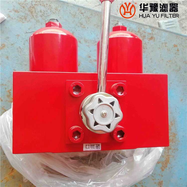 SGF系列雙筒高壓過濾器新型該過濾器由兩只單筒過濾器,換向閥、旁通閥、發(fā)訊器等組成,能使系統(tǒng)在不停機(jī)狀況下更換濾芯,使用于連續(xù)工作的液壓系統(tǒng)。當(dāng)其中一只過濾器的濾芯堵塞至壓差發(fā)訊器壓力指示值為0.5MPa時(shí),發(fā)訊器發(fā)訊、這時(shí)必須更換濾芯。只要轉(zhuǎn)動換向閥、另一只備用過濾器即刻工作,這時(shí)只需要放開螺塞放完油、再旋下外殼、就可更換已堵塞的濾芯。需更換濾芯側(cè)過濾筒,允許少量內(nèi)泄漏。如因故未能及時(shí)更換濾芯壓差繼續(xù)升至旁通閥開啟壓力為0.6MPa時(shí),旁通閥自動開啟以避免由于壓力繼續(xù)上升,濾芯破裂造成再污染,但用戶必須在發(fā)訊器發(fā)訊時(shí)更換濾芯。