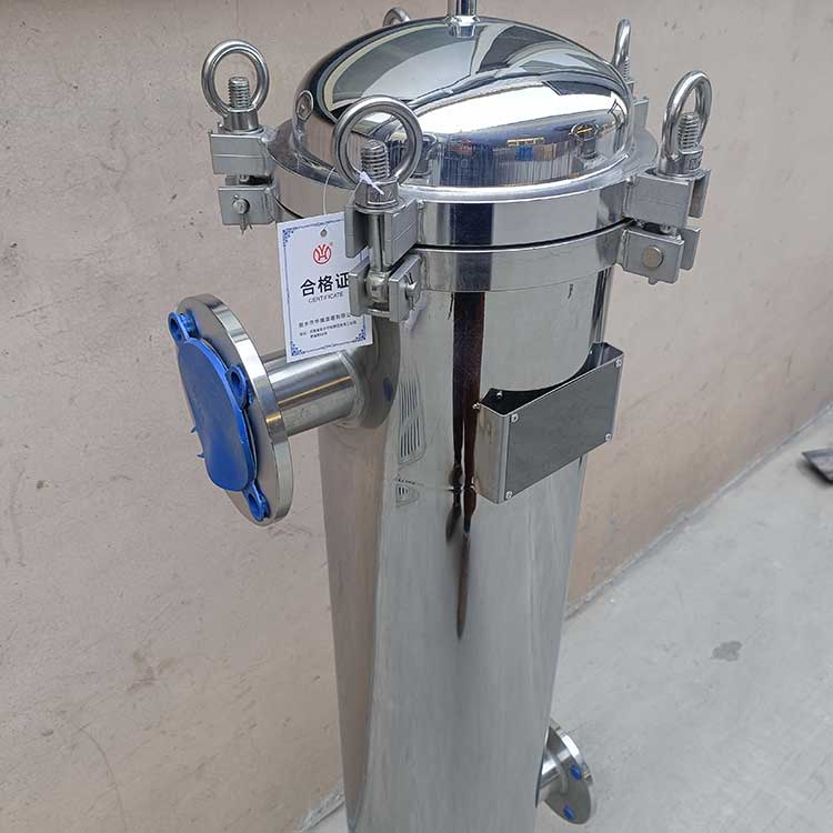 袋式過(guò)濾機(jī)是一種壓力式過(guò)濾裝置,主要有過(guò)濾筒體、過(guò)濾筒蓋和快開(kāi)機(jī)構(gòu)、不銹鋼濾袋加強(qiáng)網(wǎng)等主要部件組成,濾液由過(guò)濾機(jī)外殼的旁側(cè)入口管流入濾袋,濾袋本身是裝置在加強(qiáng)網(wǎng)籃內(nèi),液體滲透過(guò)所需要細(xì)度等級(jí)的濾袋即能獲得合格的濾液,雜質(zhì)顆粒被濾袋攔截該機(jī)更換濾袋十分方便,過(guò)濾基本無(wú)物料消耗。袋式過(guò)濾器具備構(gòu)造合理、密封性好、流通才能強(qiáng)、操作簡(jiǎn)便等諸多長(zhǎng)處。尤其是濾袋側(cè)漏機(jī)率小,能正確地保障過(guò)濾精度,并能快捷地改換濾袋,使得操作成本下降。濾器內(nèi)外表面采取機(jī)械噴砂拋光解決,平均、易清洗。我們知道,袋式過(guò)濾器所采取的過(guò)濾方法是側(cè)進(jìn)側(cè)出的方法,也可以采取側(cè)進(jìn)底出的方法,通過(guò)管道中的壓力將過(guò)濾液體介質(zhì)壓入或抽入袋式過(guò)濾器桶體,要過(guò)濾的液體介質(zhì)經(jīng)由電拋光沖孔支持濾藍(lán)承托的過(guò)濾袋的過(guò)濾,發(fā)生變化的固液分別到達(dá)液體介質(zhì)被過(guò)濾的結(jié)果。